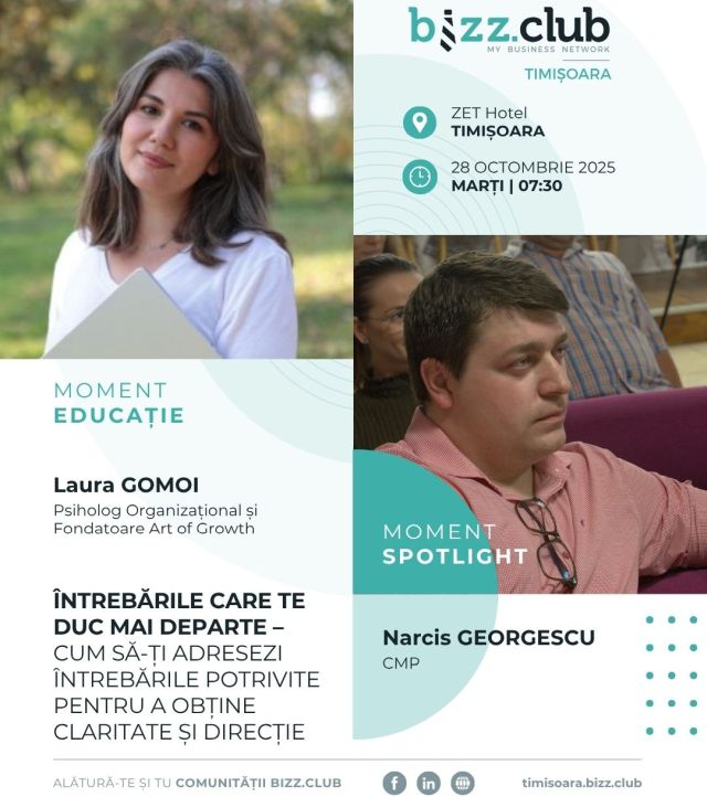 Întâlnirile Bizz Club Timișoara au devenit deja un reper pentru antreprenorii care cred în dezvoltare continuă, parteneriate autentice și schimb de know-how. Evenimentele săptămânale combină educația de business cu inspirația personală, într-un cadru prietenos și profesionist.