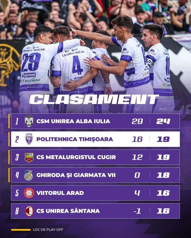 În clasament gazdele au 24 de puncte, urmate de timișoreni cu 19 puncte.